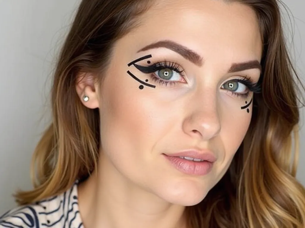 Experiment with geometric eyeliner shapes, inspired by tribal or celestial patterns, for a striking boho twist.