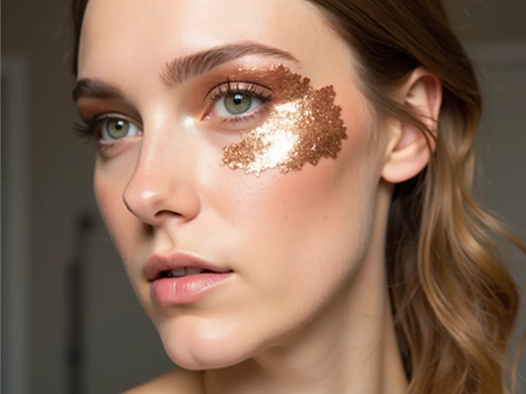 Apply gold or copper foil to your eyelids or cheekbones for a raw, undone shimmer effect.