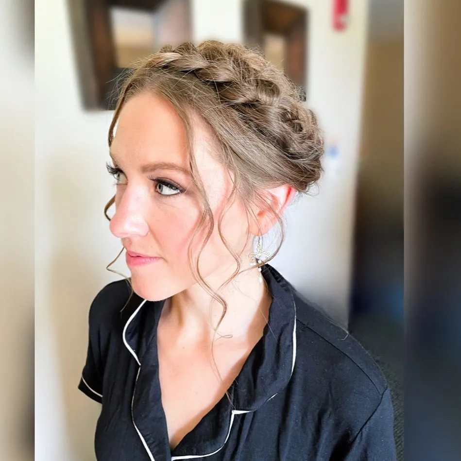 Instead of a polished braid, go for a messy, undone crown braid with loose strands framing the face for a carefree yet dramatic look.
