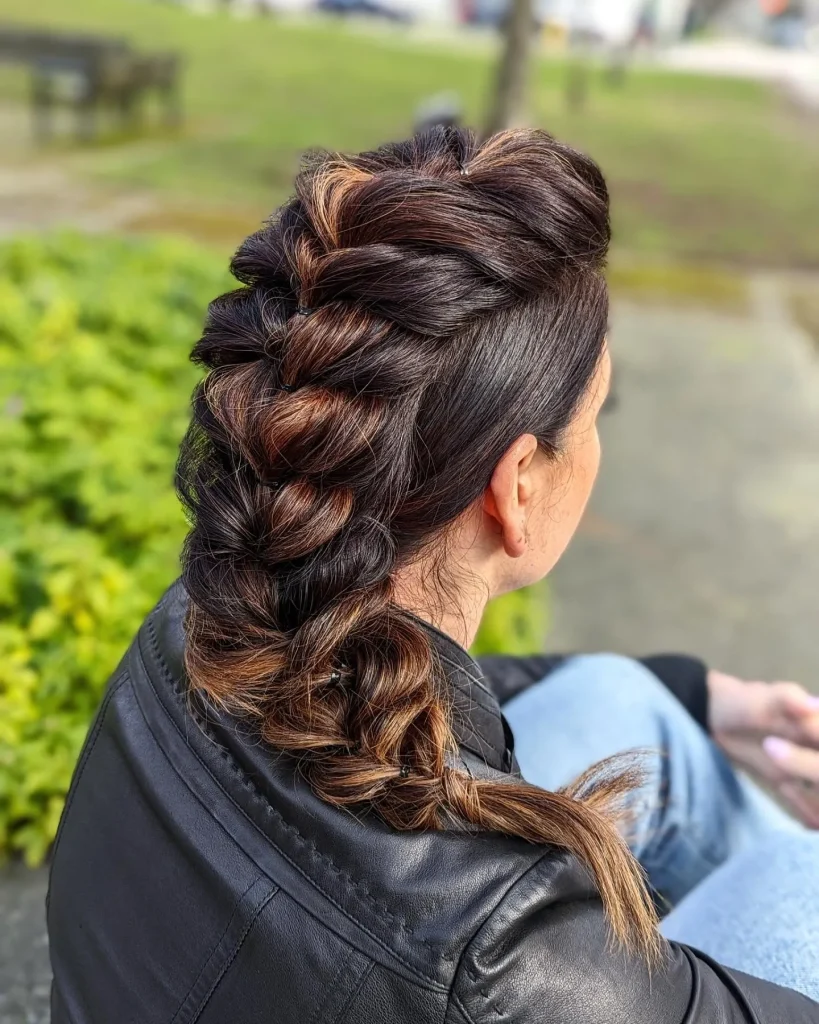 • How to Get the Look: Gather all your hair to one side. Create a loose, slightly messy traditional or fishtail braid. Secure with a clear elastic, then gently pull the sections of the braid apart to add volume and create an “undone” look.