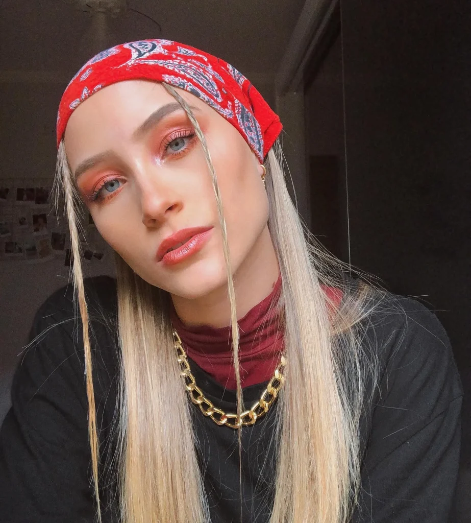 • How to Get the Look: Fold a bandana into a long, thin band. Tie it around your forehead like a headband, either over or under your hair. Done.