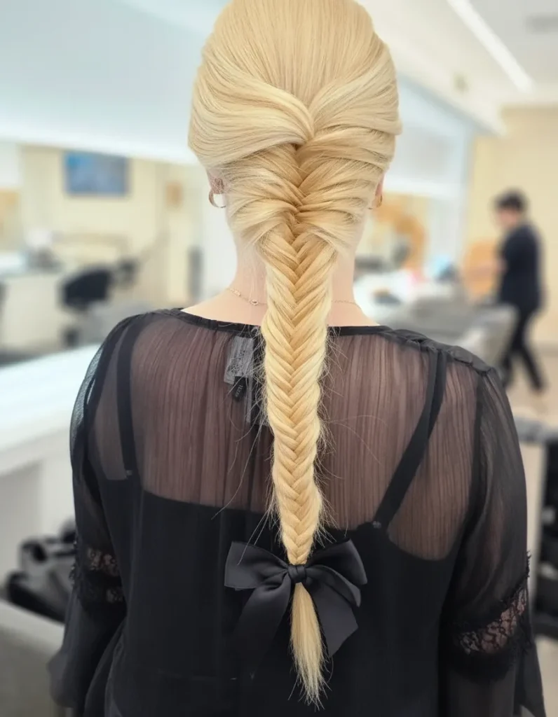 - Real Talk: How to Get the Look: Gather your hair to one side and create a loose fishtail braid. Secure the end with a clear elastic. Tie a bow just above the elastic, letting the tails blend in with the end of your braid.