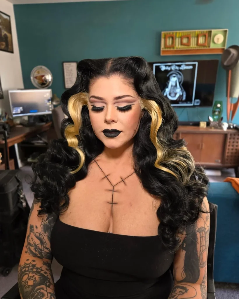 - Visual Vibes: High-voltage horror chic. It’s dramatic, gravity-defying, and instantly recognizable. The perfect blend of mad science and monstrous glamour. That iconic white streak? Non-negotiable.