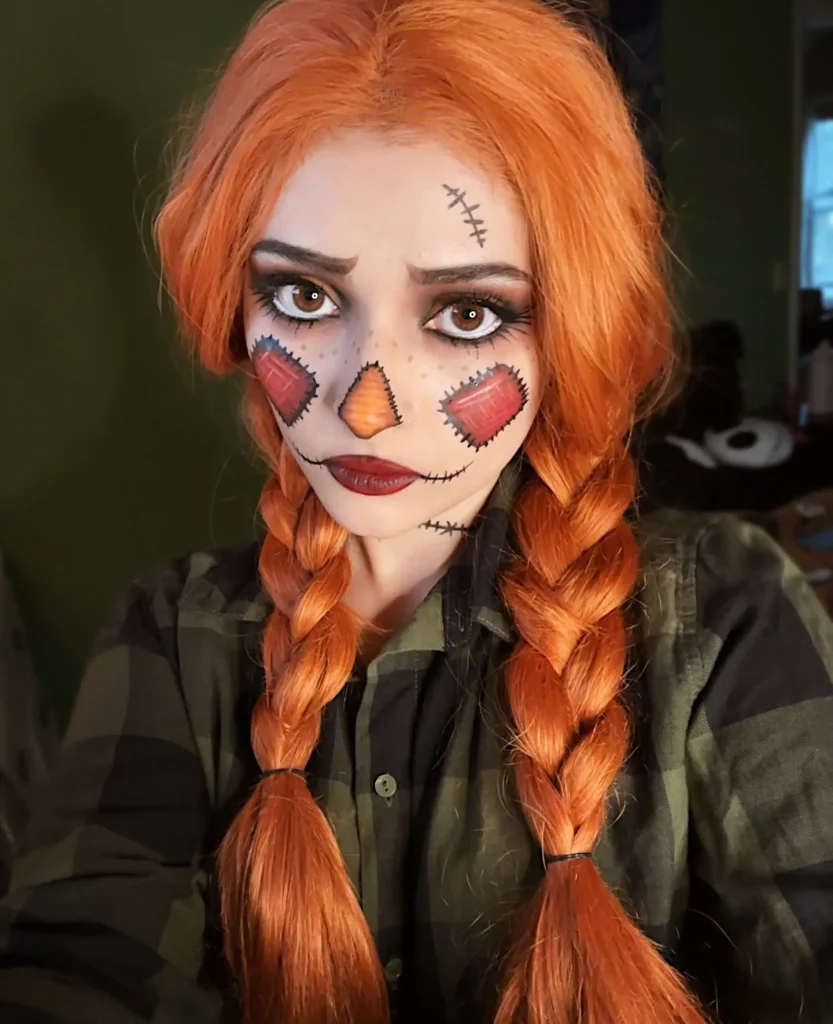 - Pro-Tip: Secure the braids with twine or burlap ribbon instead of regular hair elastics to fully commit to the scarecrow aesthetic.