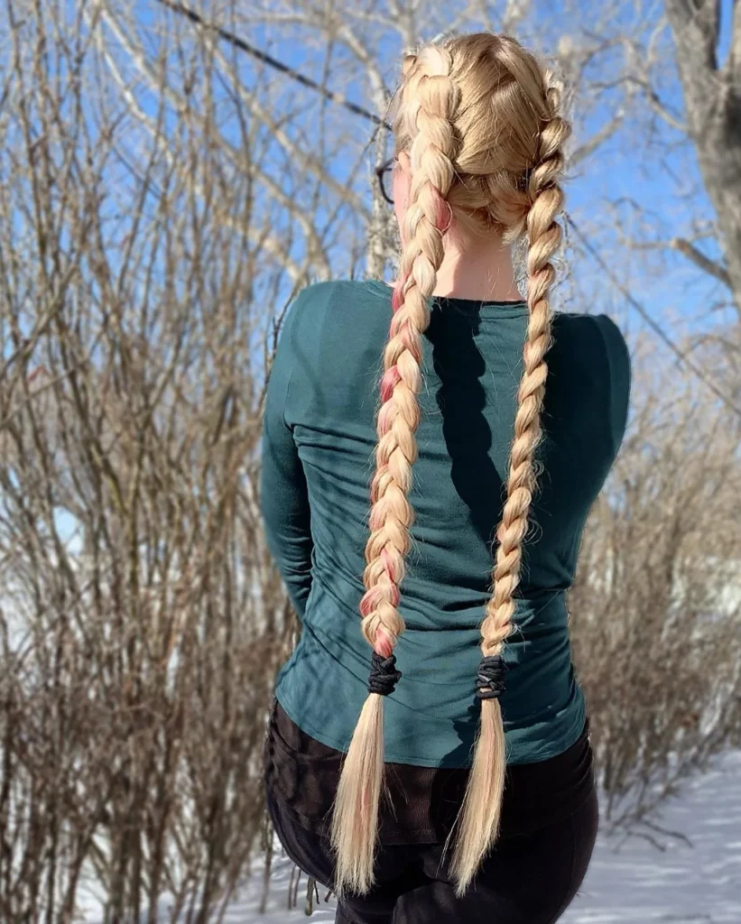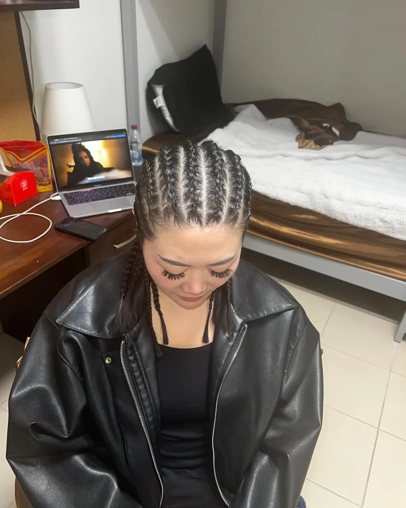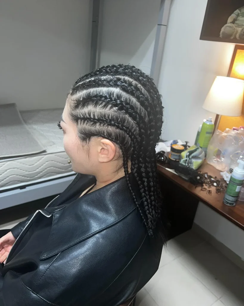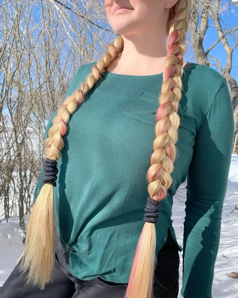 For a creative flair, shape your braids into a heart before securing them into a ponytail or bun, showing off both personality and practicality.