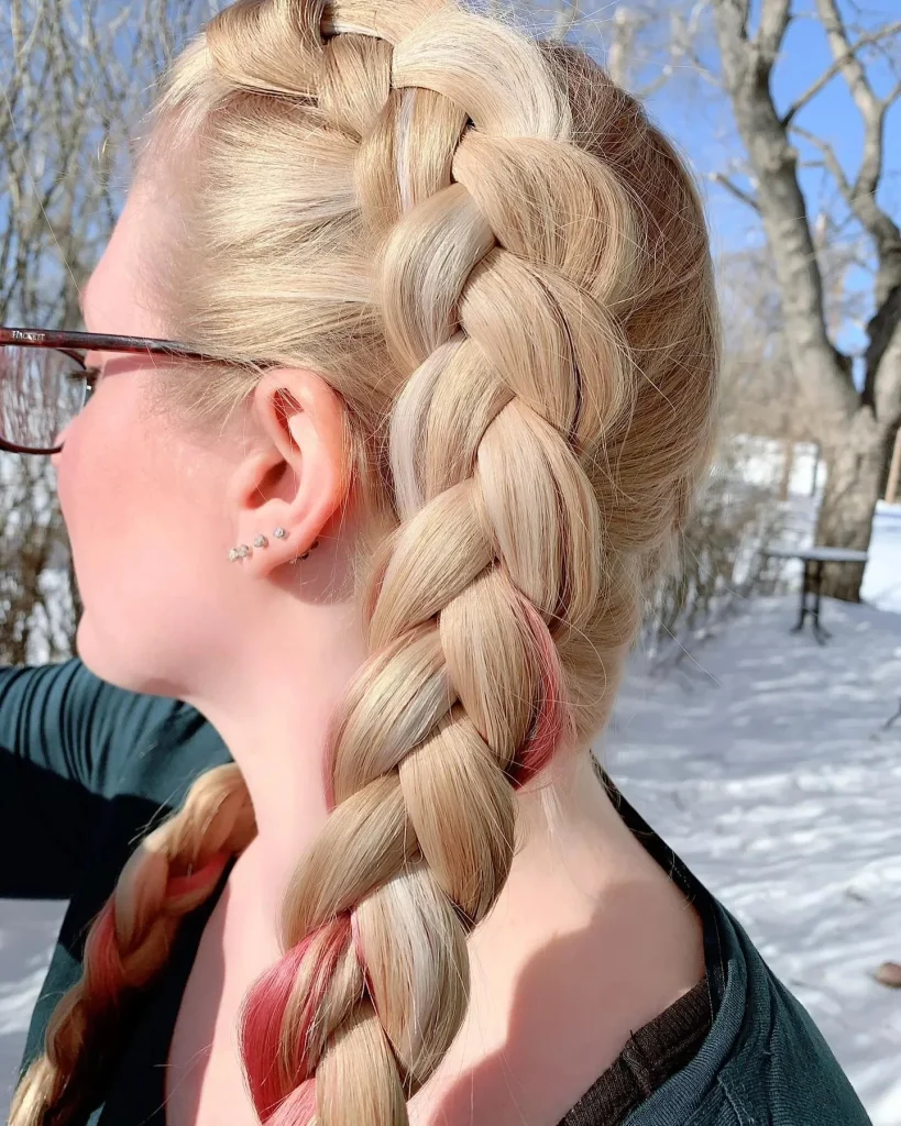 A fun and functional style, braids on each side keep things extra secure while adding a bold touch.