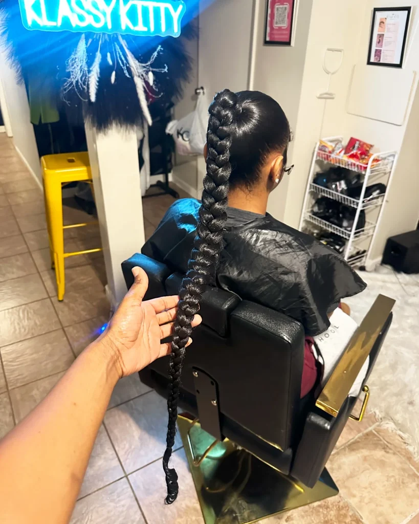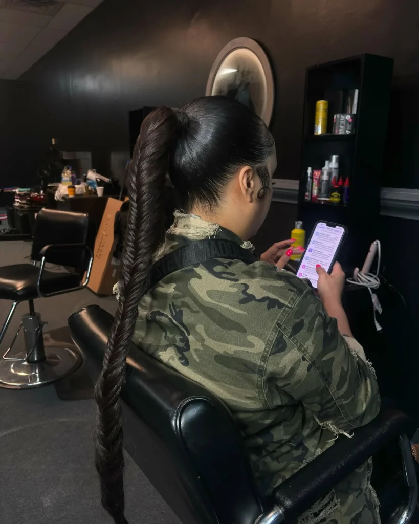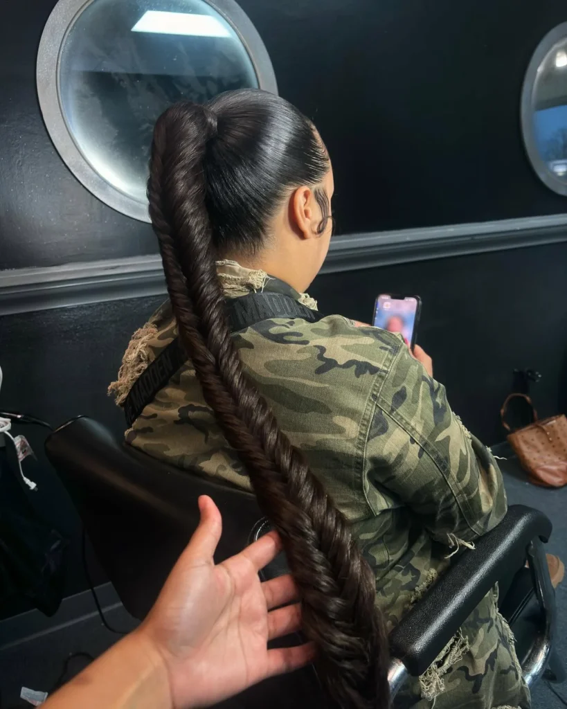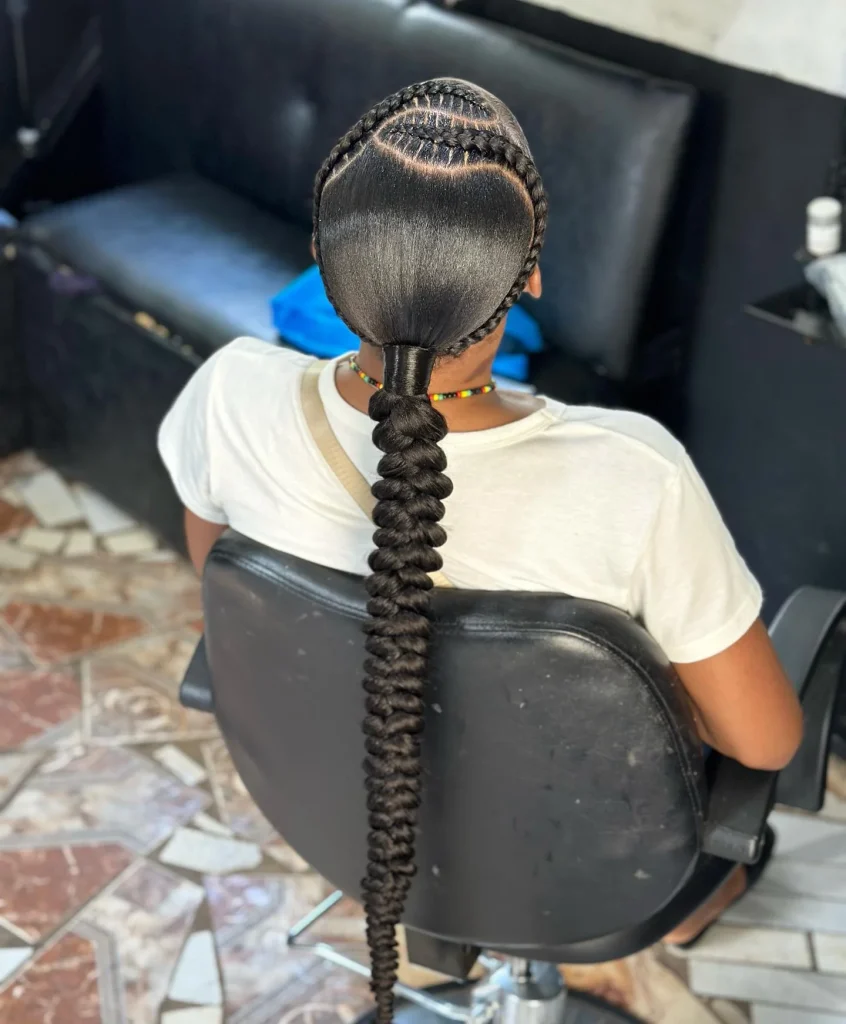 This style blends a classic high ponytail with a tight braid for a polished yet secure look.