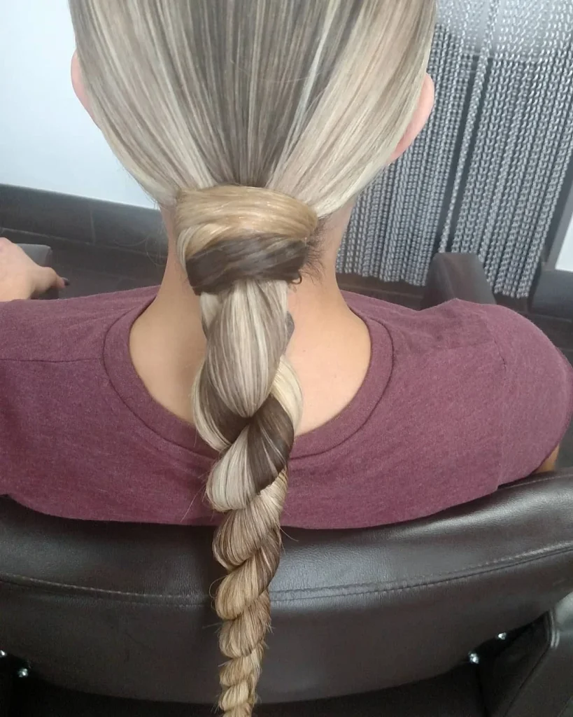 Twist and secure two strands into a braided ponytail for an easy, stylish option that stays in place.