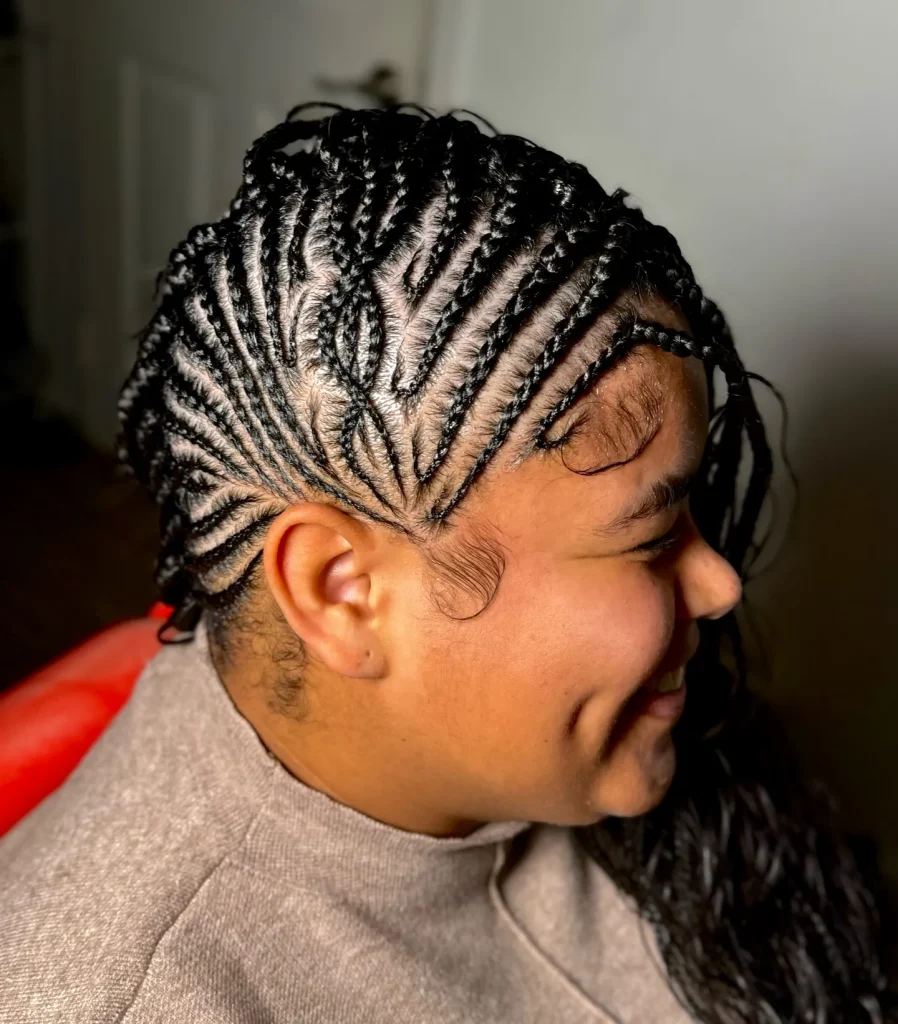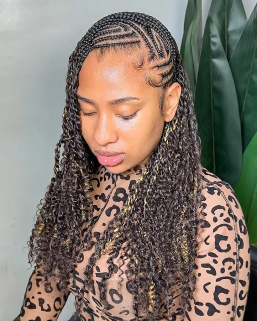 - Visual Vibes: Regal, intricate, and culturally rich. Characterized by a central cornrow (or a few) braided down the middle of the head, with more cornrows braided towards the temples, often adorned with beads or cowrie shells. Often combined with box braids or twists at the back.