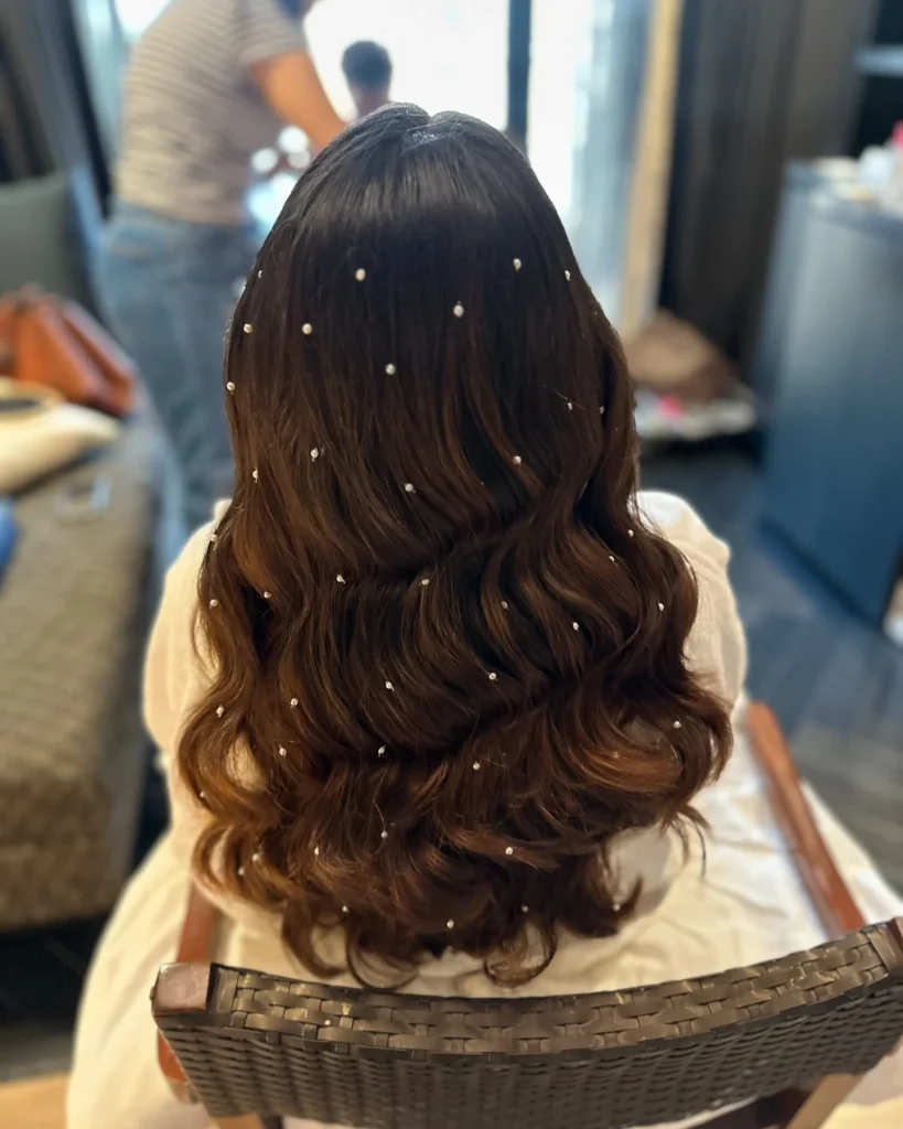 Level up your loose waves with pearl clips or scattered pearls for an ethereal, romantic finish.