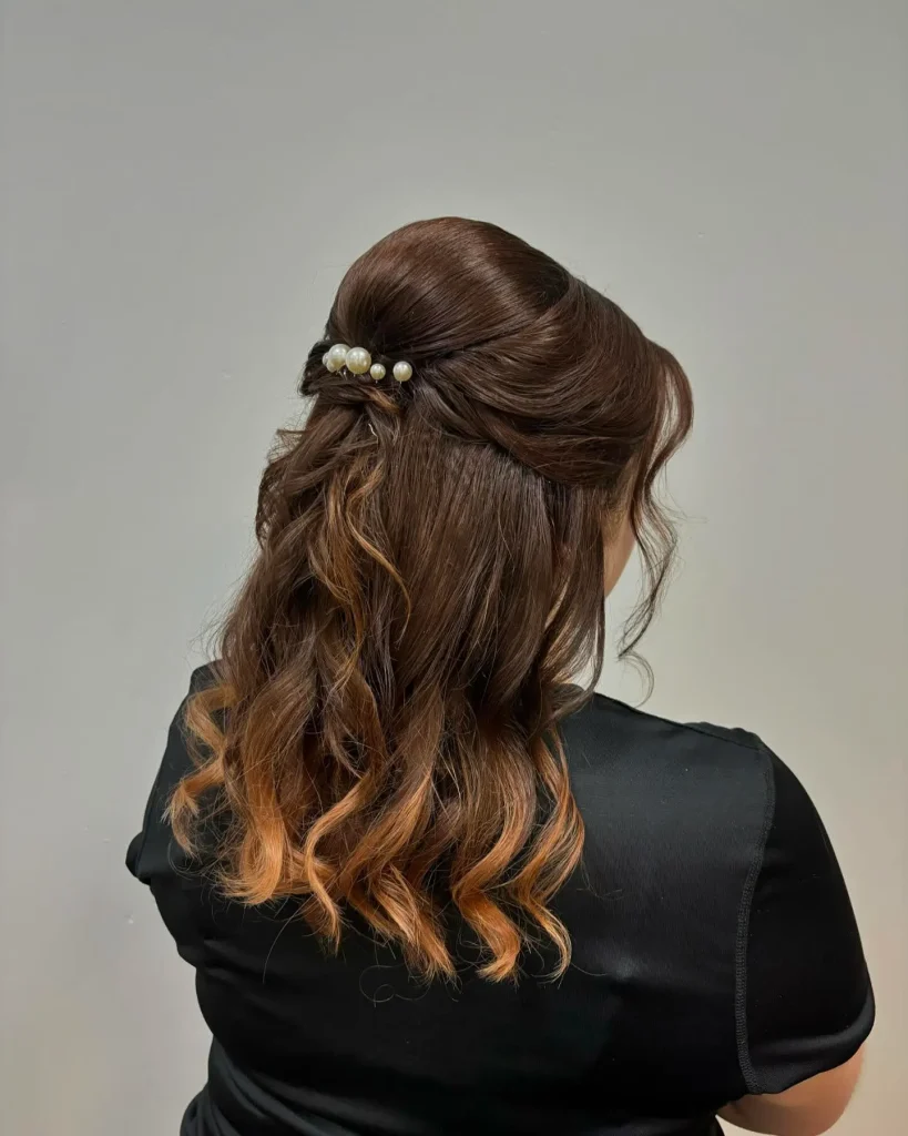 - Visual Vibes: Your hair worn down (straight, wavy, or curly) but elevated with a special hair accessory – clips, pins, a headband, etc.