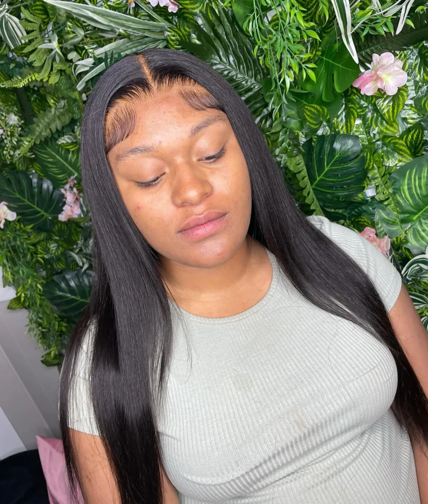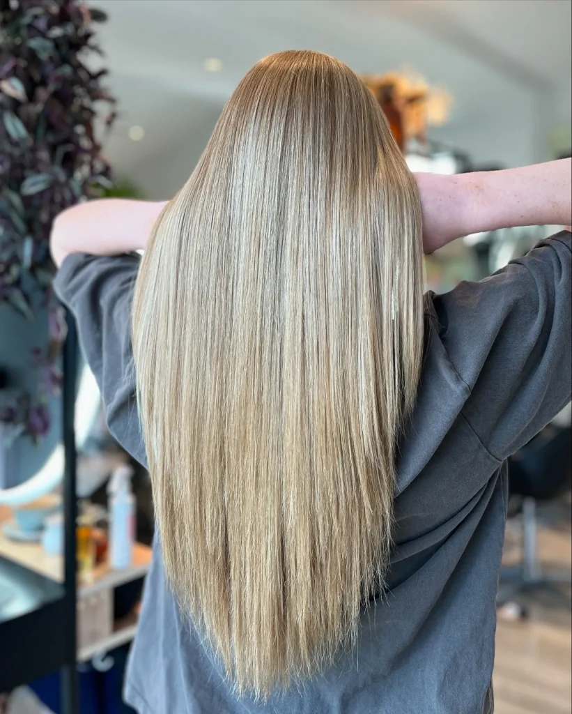 - Real Talk with Your Stylist: Ask for a “sharp center part with a sleek finish.” Discuss how smooth you want the top and if the lengths will be straight or softly waved lower down.