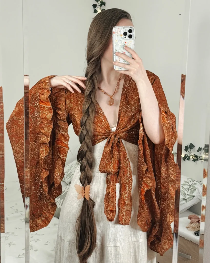 - Visual Vibes: A classic braid draped over one shoulder, adding a delicate and pretty detail. It feels charming and controlled.