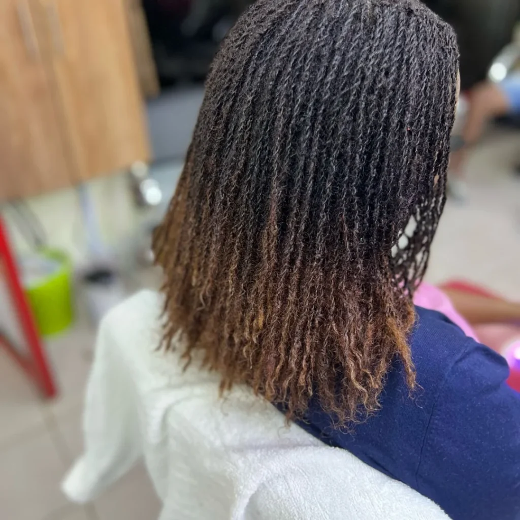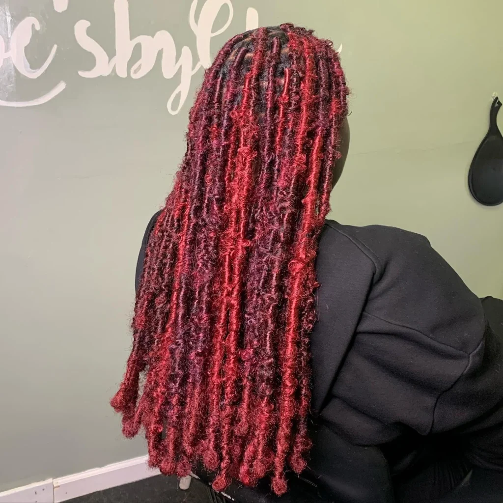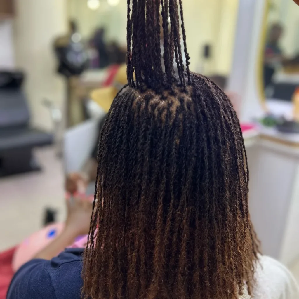 Pre braided, twisted, or loc’d hair is then looped onto the cornrows.