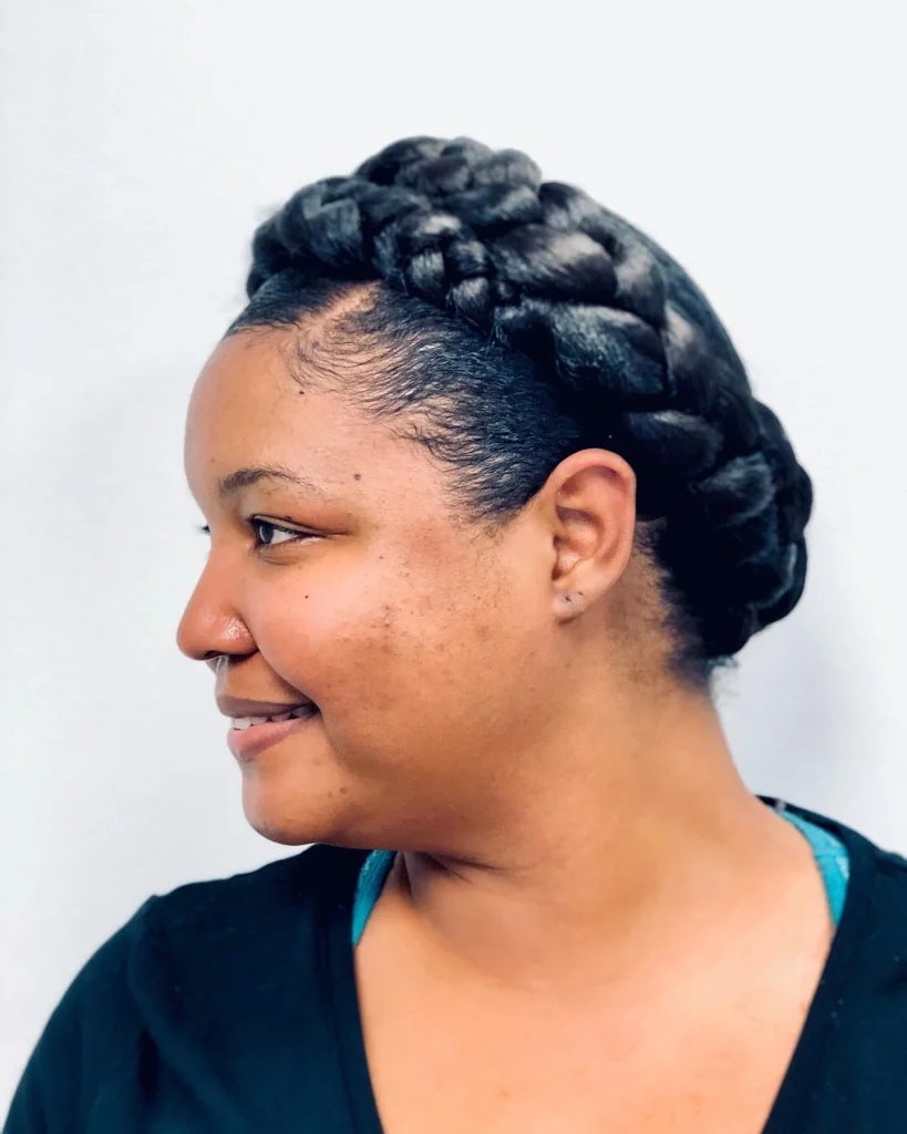 One large braid wrapped around the head like a crown? Chef’s kiss.