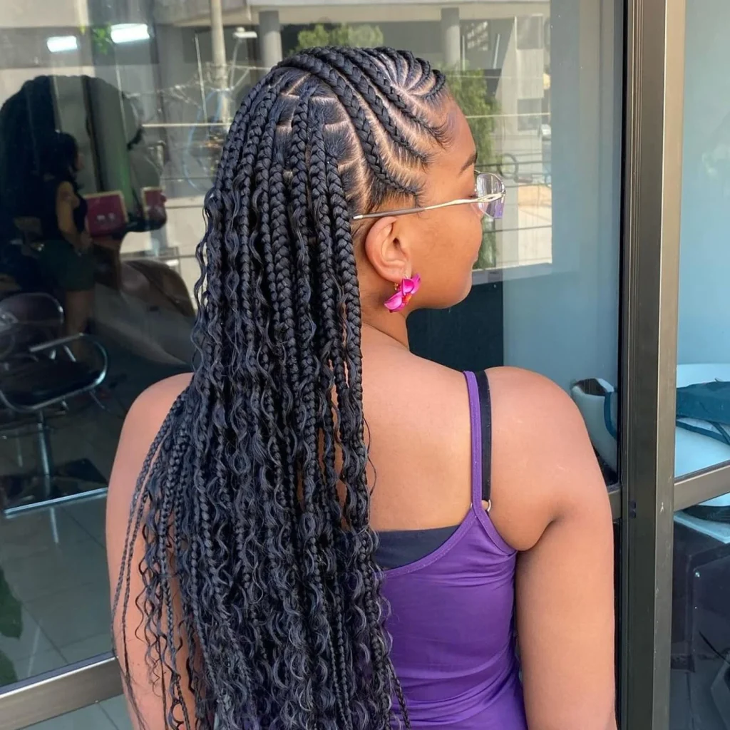 Named after Queen Bey’s iconic look, these are side swept cornrows.
