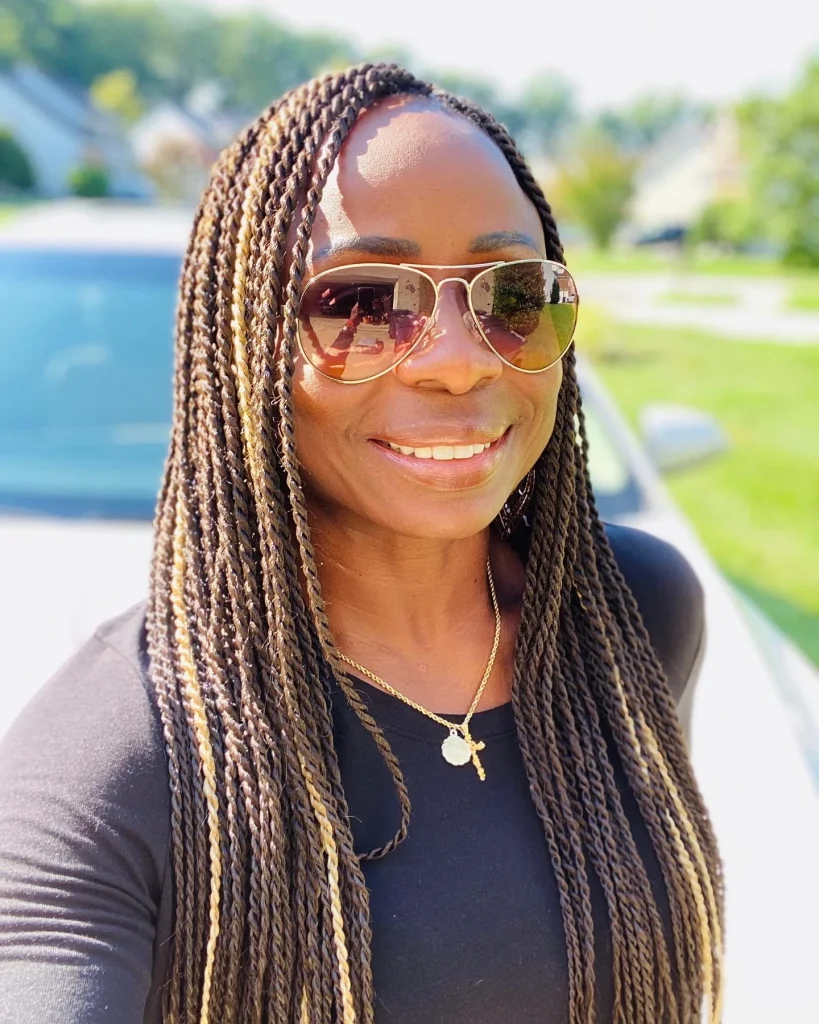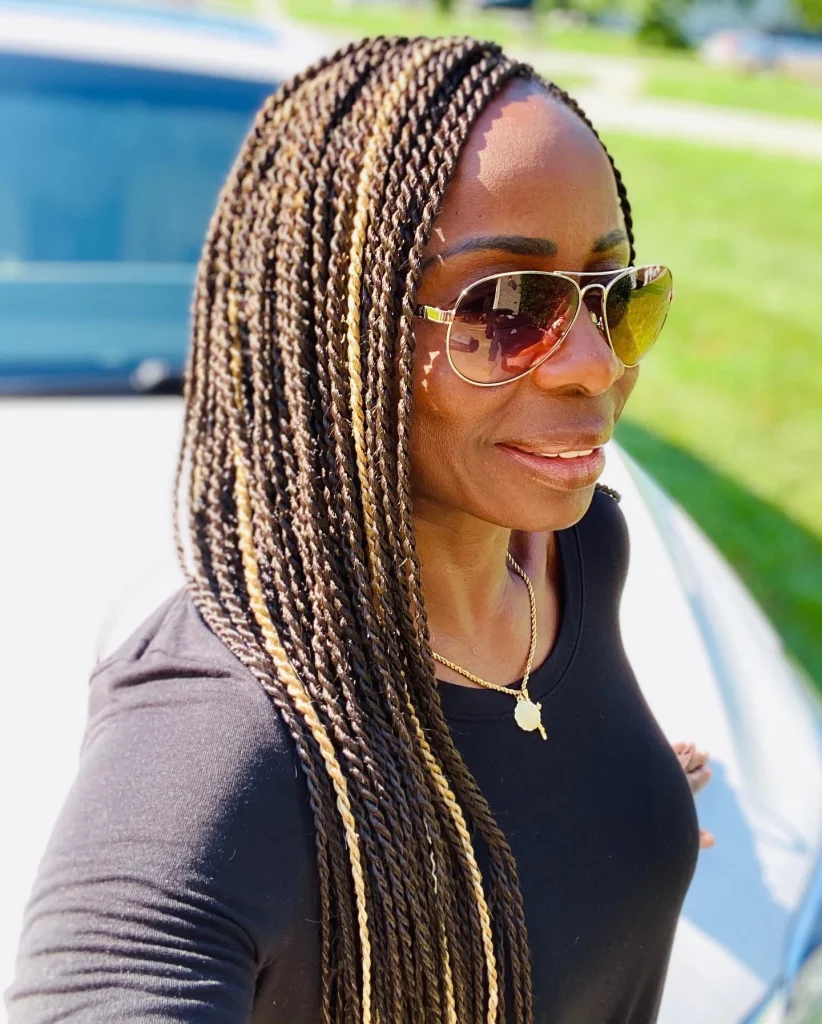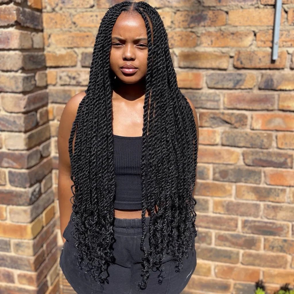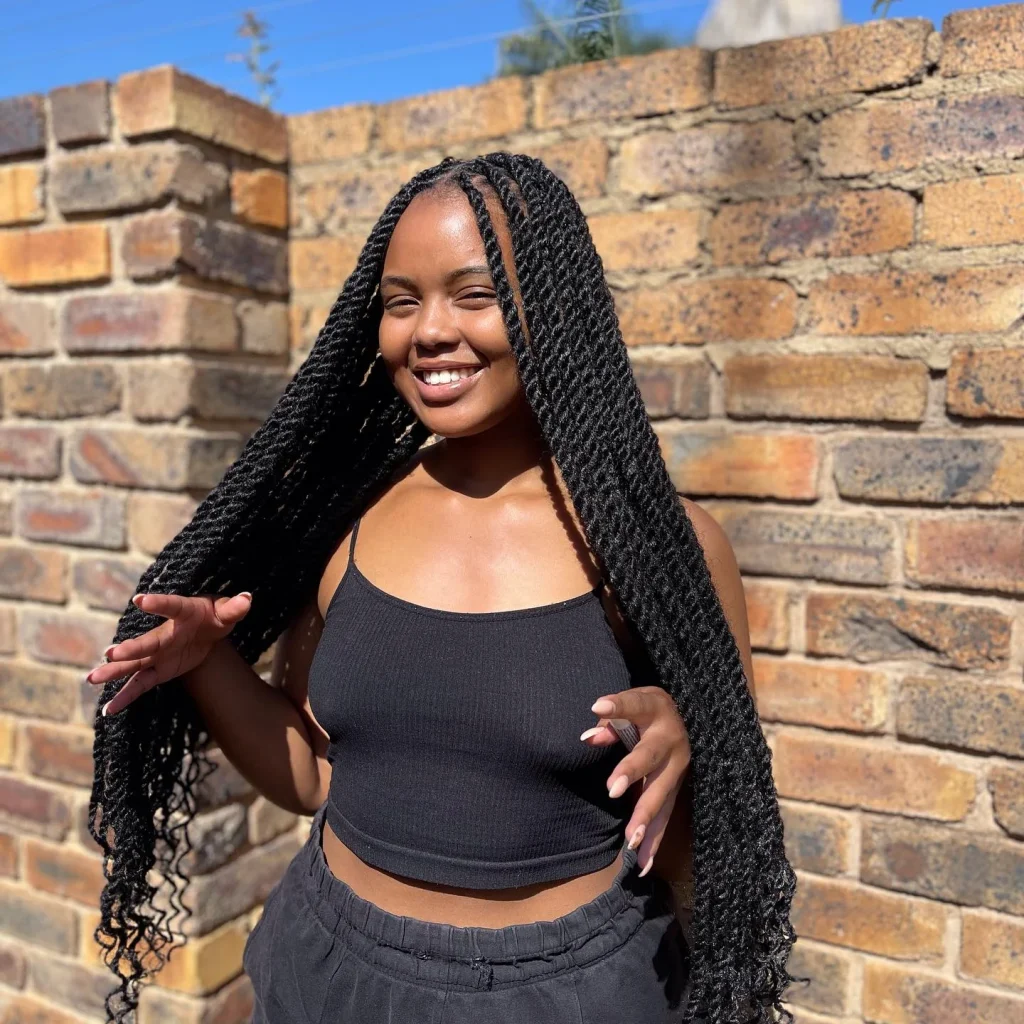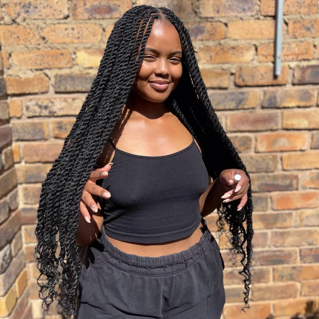 Senegalese twists use smooth, Kanekalon hair for a silky finish.