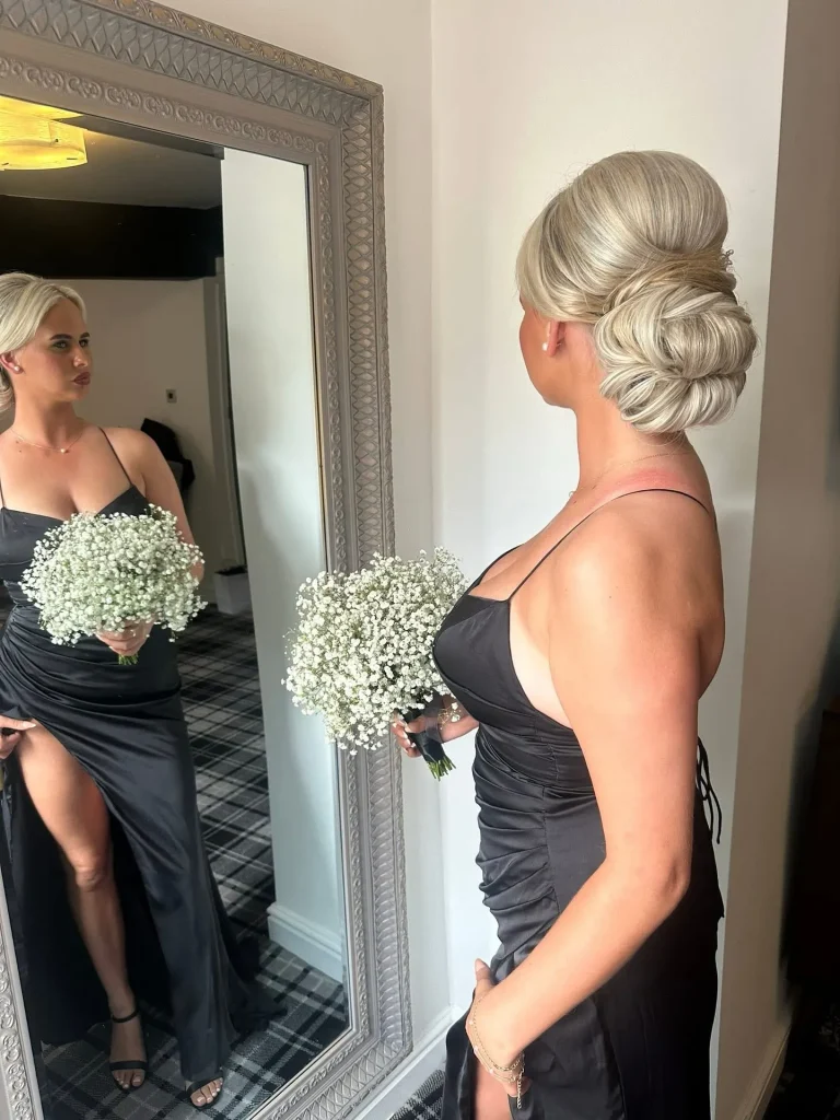 - Occasion Perks: This updo is wonderfully forgiving of little flyaways, and it’s super easy to touch up if needed. It’s also perfect for dancing and moving freely without a second thought!