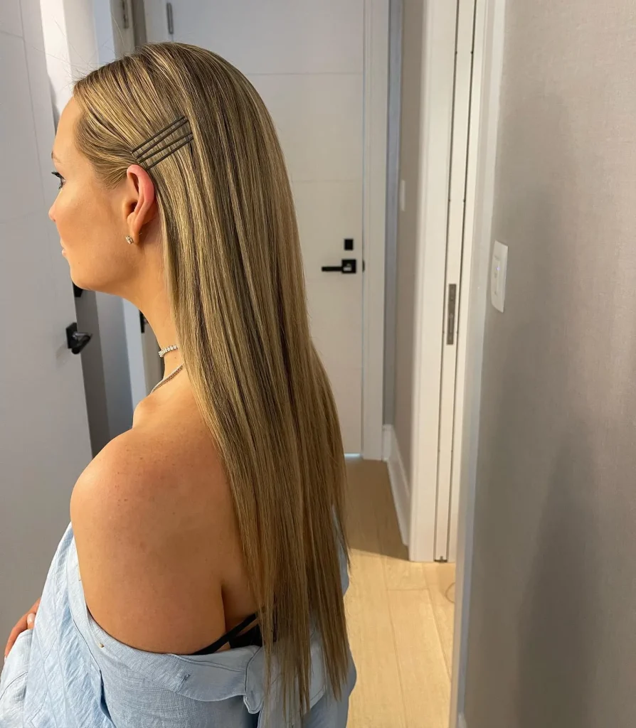- The Look & Feel: Imagine hair that’s so smooth, so shiny, it looks like liquid silk! This is perfectly straightened hair with a deep side part, often elevated with a touch of festive sparkle from a beautiful accessory. It’s minimalist, it’s modern, and it makes a seriously chic statement.
