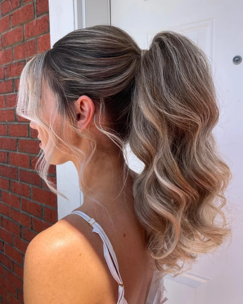 - How to Ask Your Stylist: You’ll want to request a “sleek, voluminous high ponytail with a wrapped base.” Make sure to emphasize that you want that super smooth finish with absolutely no bumps!