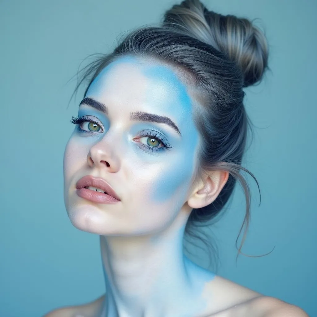 Paint fluffy clouds across your face, incorporating soft blues and whites for a dreamy feel.