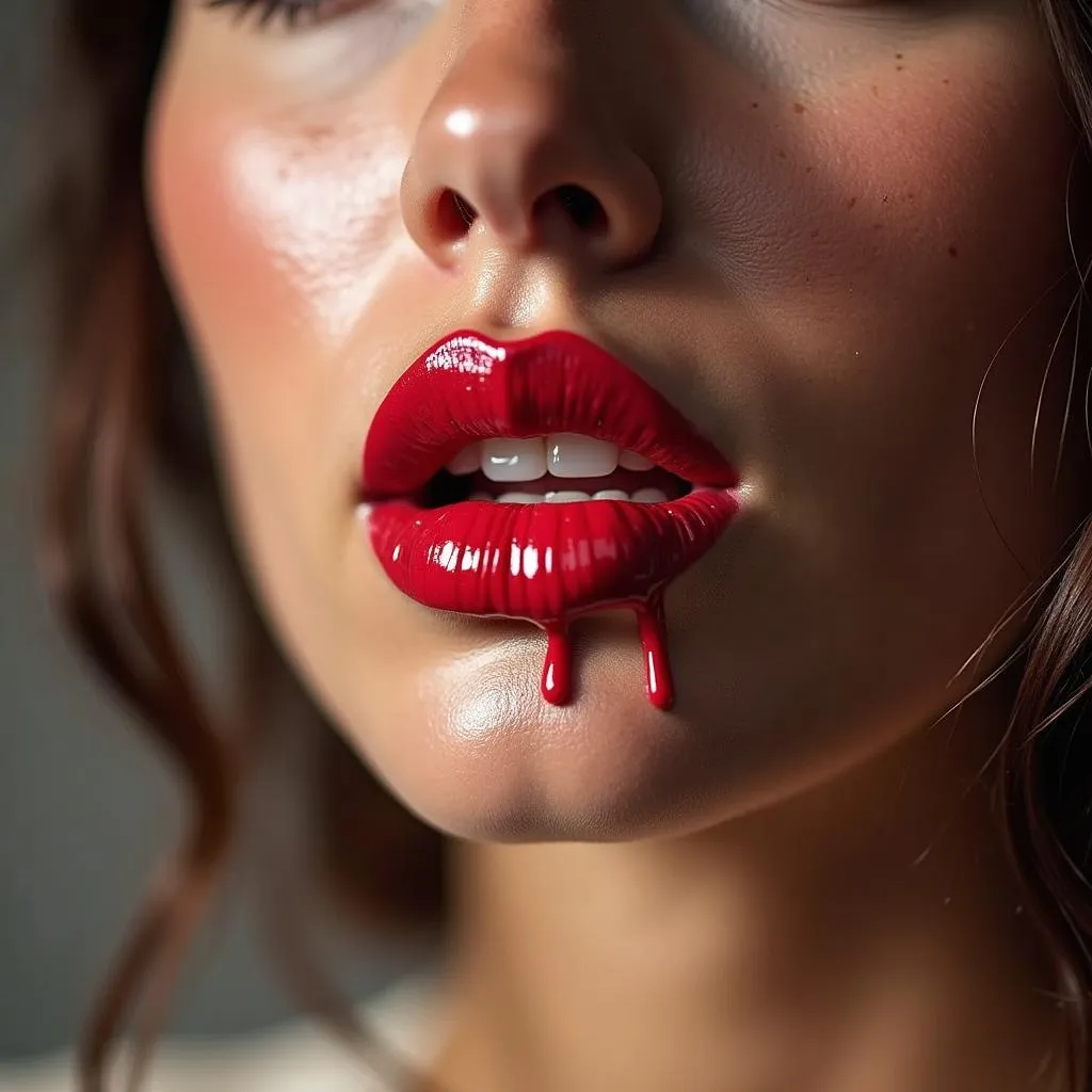 Draw dripping effects around your lips for an illusion of melting or painted-on gloss.