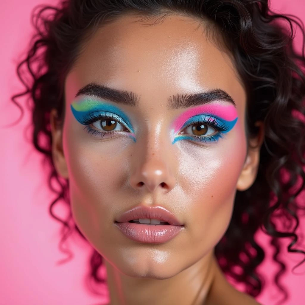 Create floating liner shapes above or around your eyes using bold colors like electric blue or neon pink.