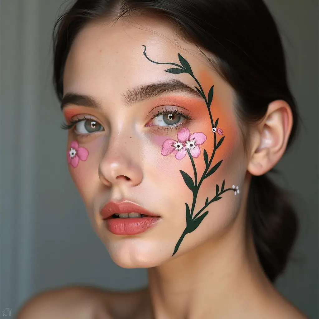 Add vibrant flowers or vines painted across your face for a nature-inspired surrealist look.