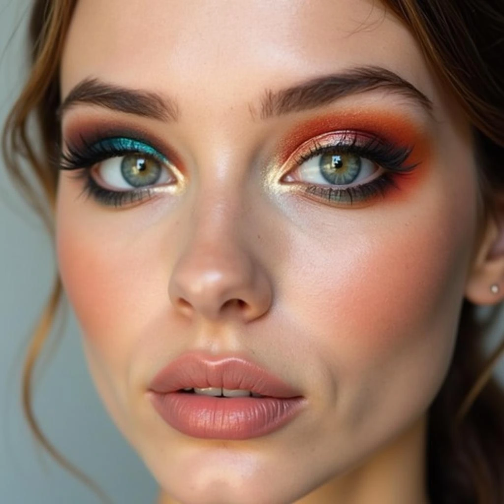 Blend different eyeshadow colors on each eye for a playful, asymmetrical look.