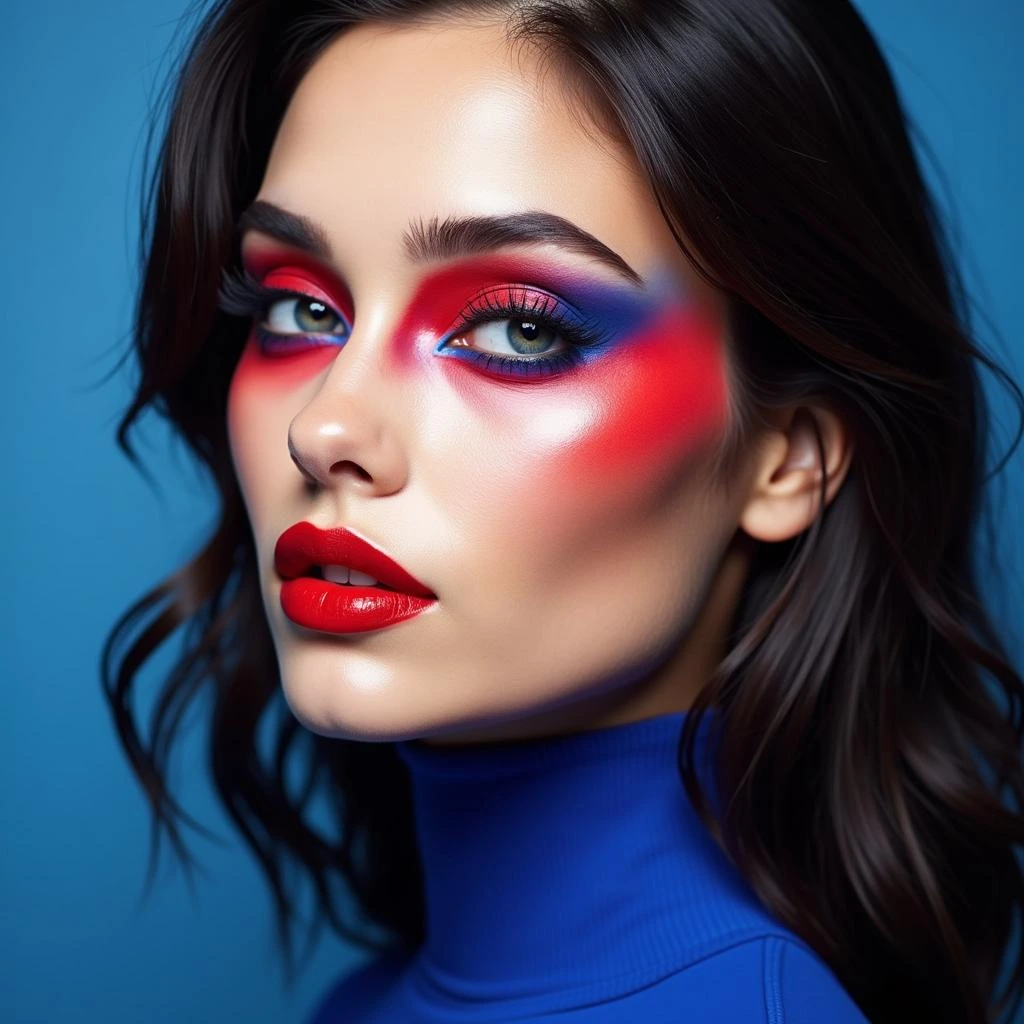 Use a single bold color, such as fiery red or cobalt blue, across your eyes, lips, and cheeks.