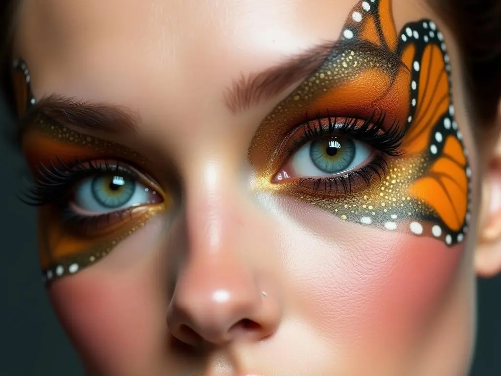 Incorporate soft, feathery strokes around the eyes for a whimsical, nature-inspired Rococo aesthetic.