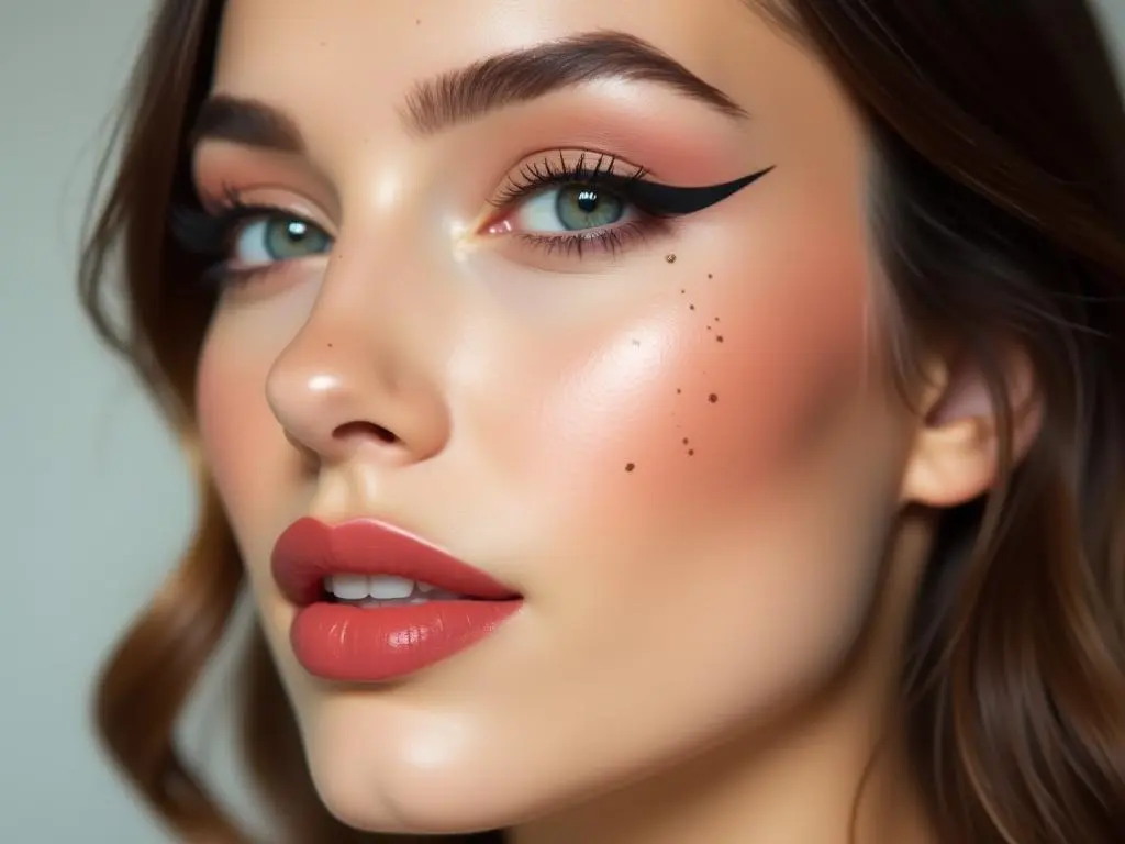 Draw small beauty spots near the lips, eyes, or cheeks using eyeliner to replicate the iconic look of the time.