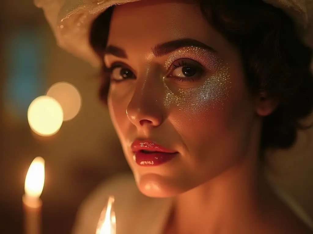 Use fine glitter on the eyelids and cheekbones to mimic the radiance of candlelit ballrooms.