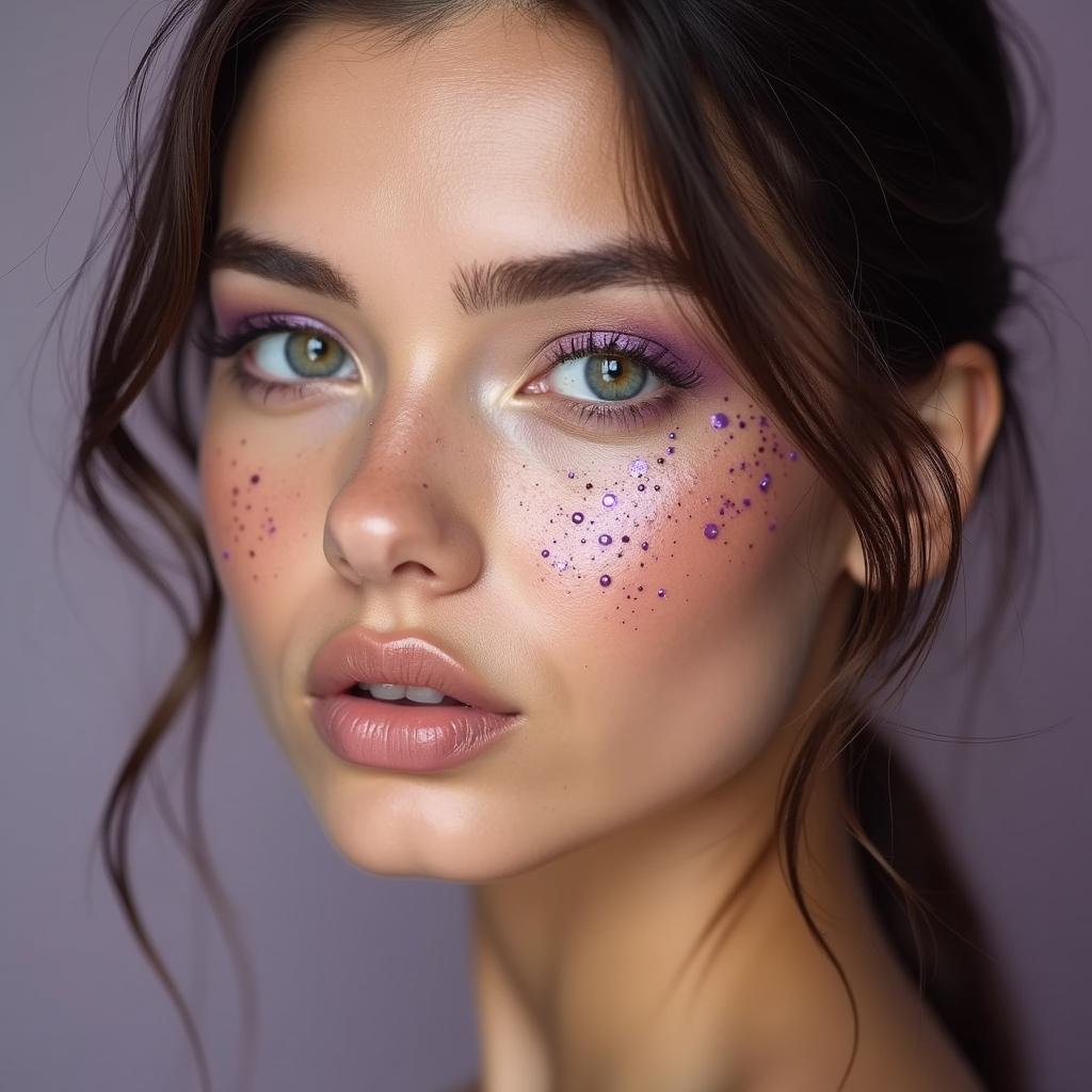 Dot a light purple blush across your cheeks and nose to mimic playful freckles for a whimsical appearance.