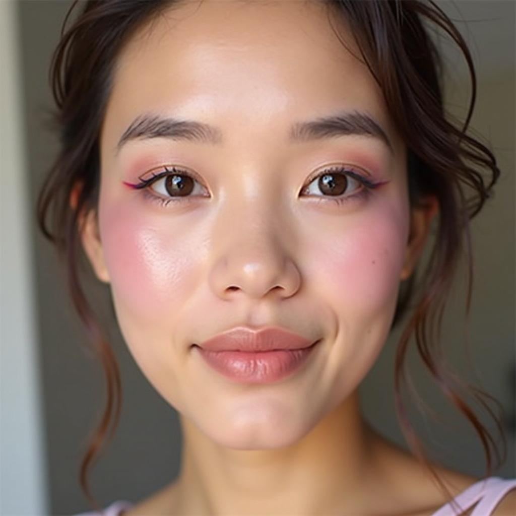 Use a vibrant, electric purple blush to add a pop of color to an otherwise minimalist makeup look.