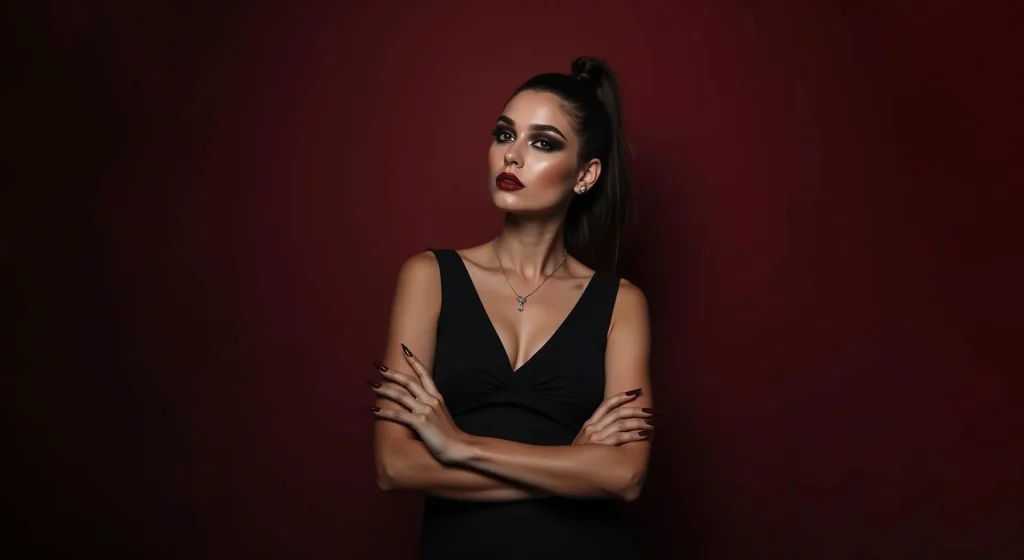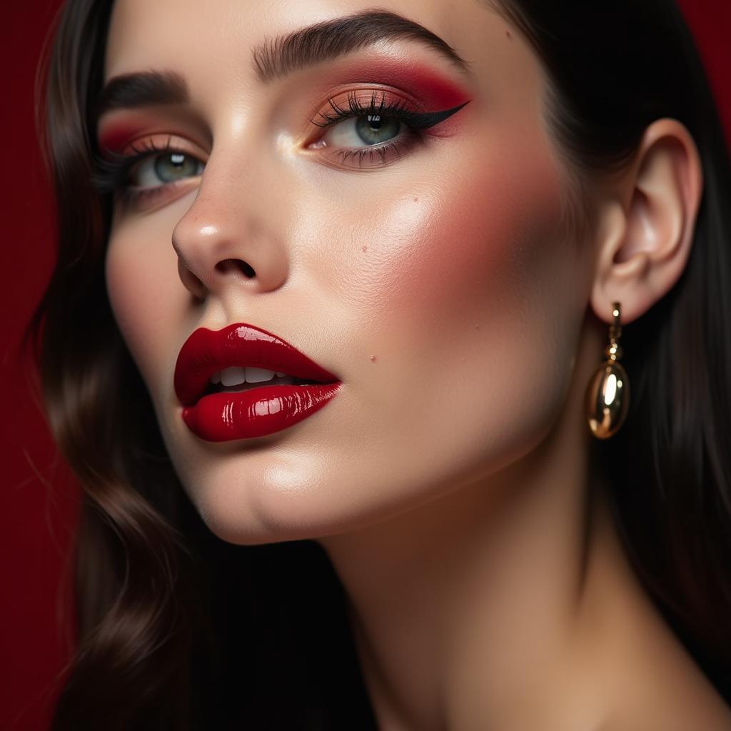 Choose a rich, dark red lipstick with a satin or matte finish for a seductive vibe.