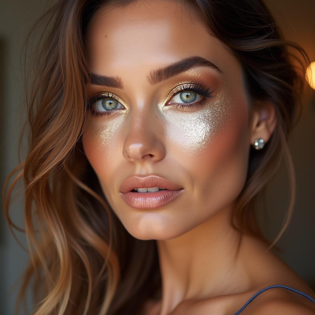 Focus on silver, icy blue, or pearlescent highlighters to add a celestial dimension to your skin.