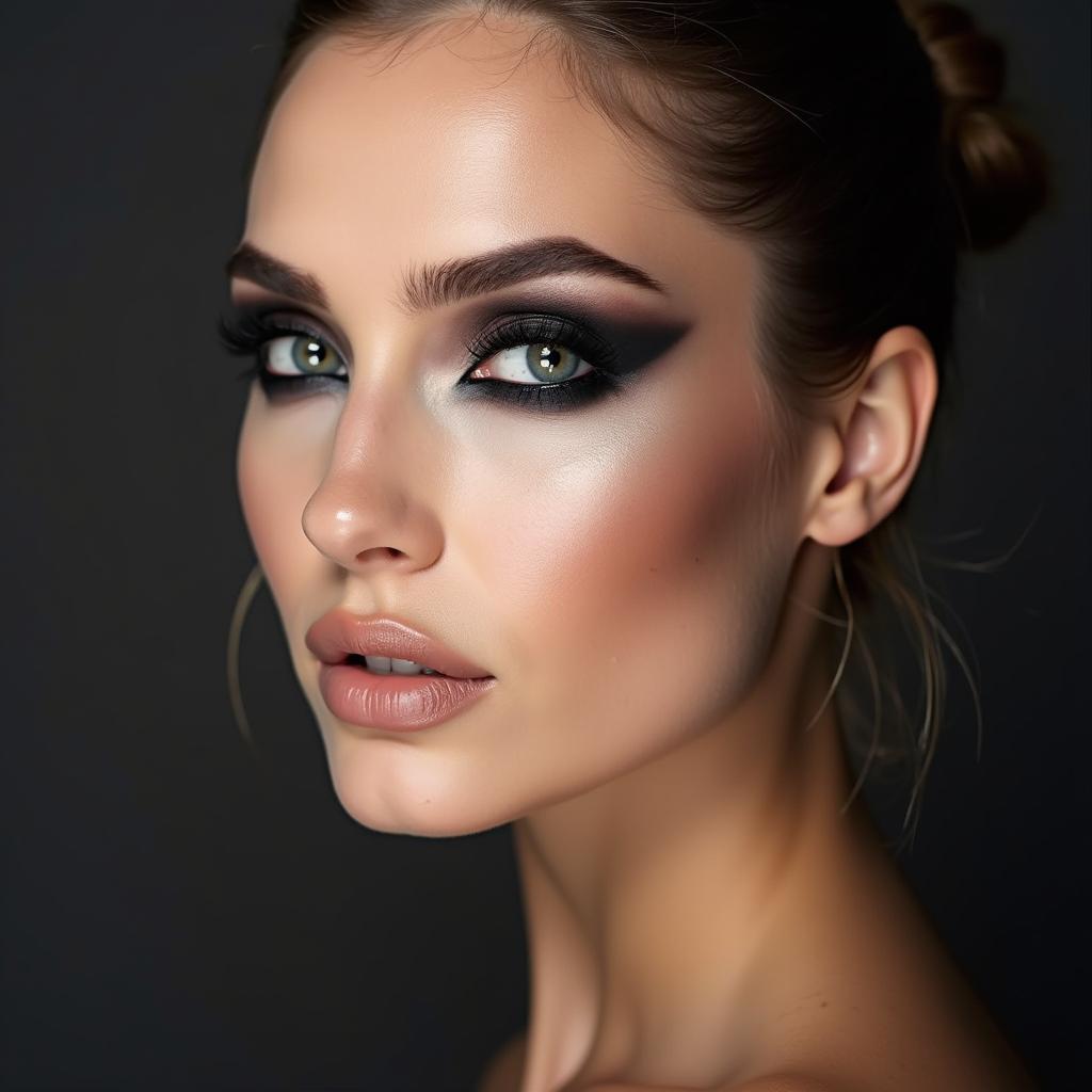 Create a classic smoky eye using deep black and charcoal shades blended seamlessly for a sultry effect.