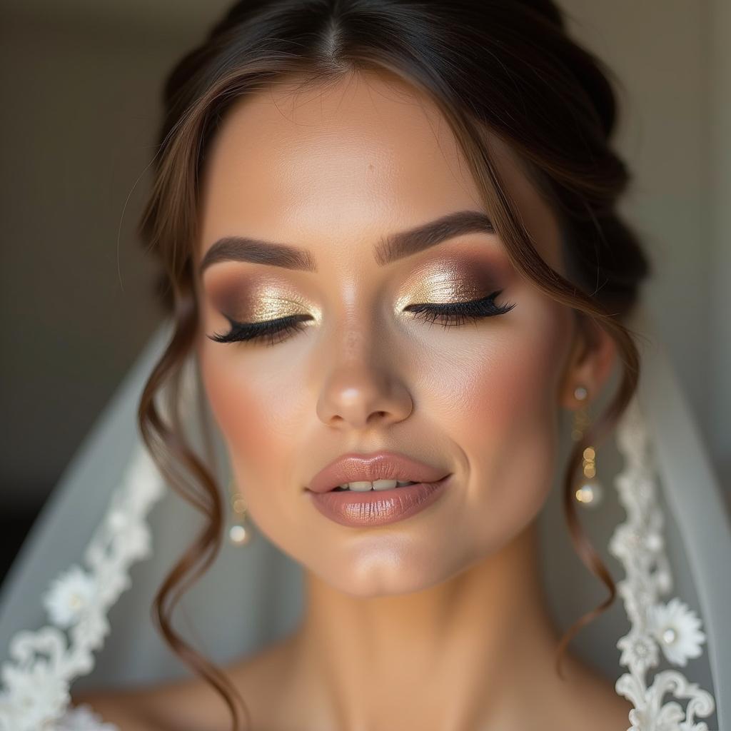 Apply gold or champagne shimmer eyeshadow to add an opulent touch to your bridal look.
