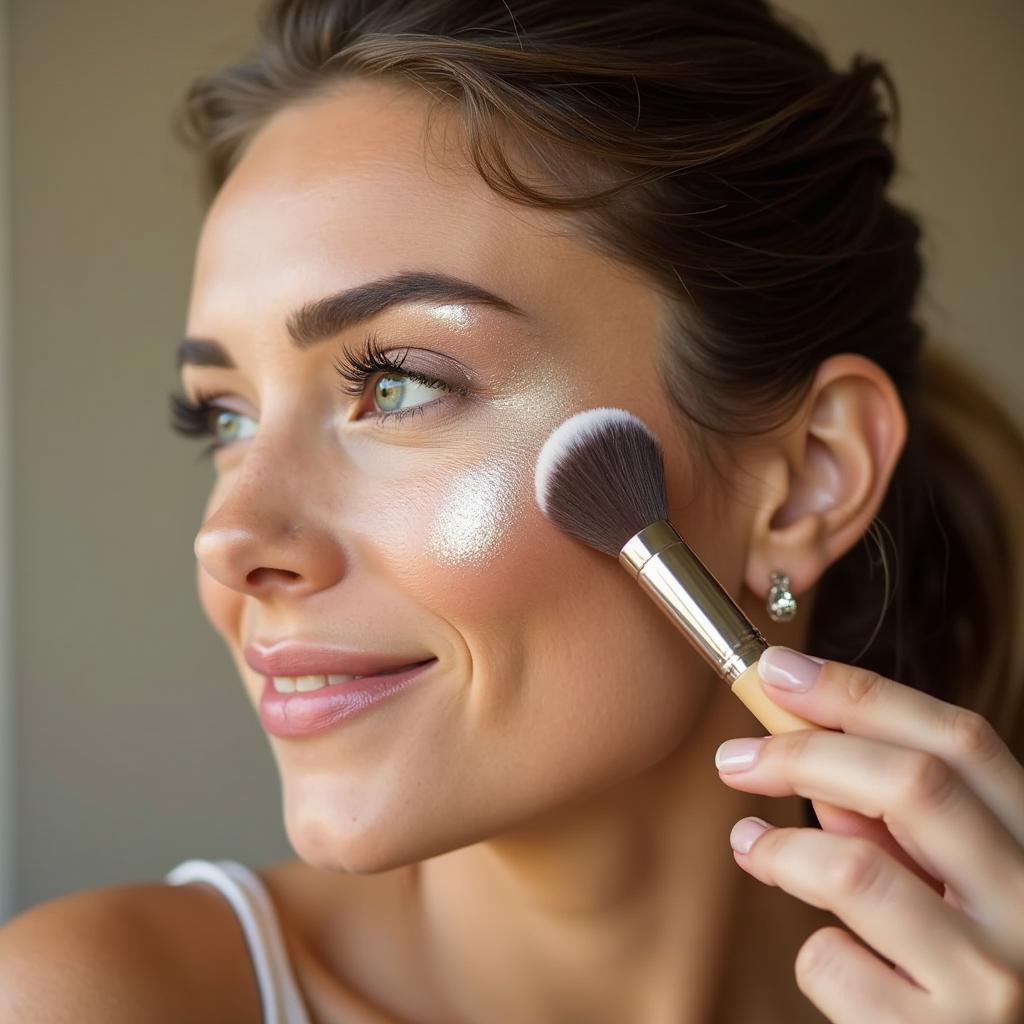 Use a fan brush for a light, diffused application of powder highlighter.