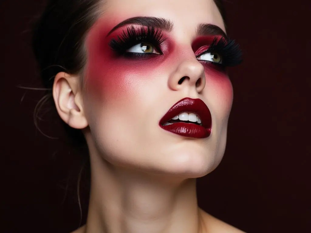 Blend deep red and burgundy eyeshadows for a vampiric, sultry aesthetic.