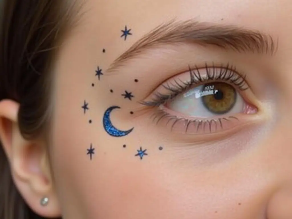 Paint tiny crescent moons and celestial symbols near your eyes for a mystical touch.