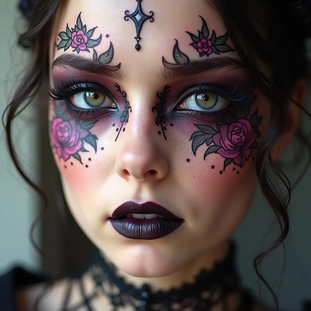 Add tiny floral motifs using deep red, violet, or black pigments for a gothic fairy-tale look.