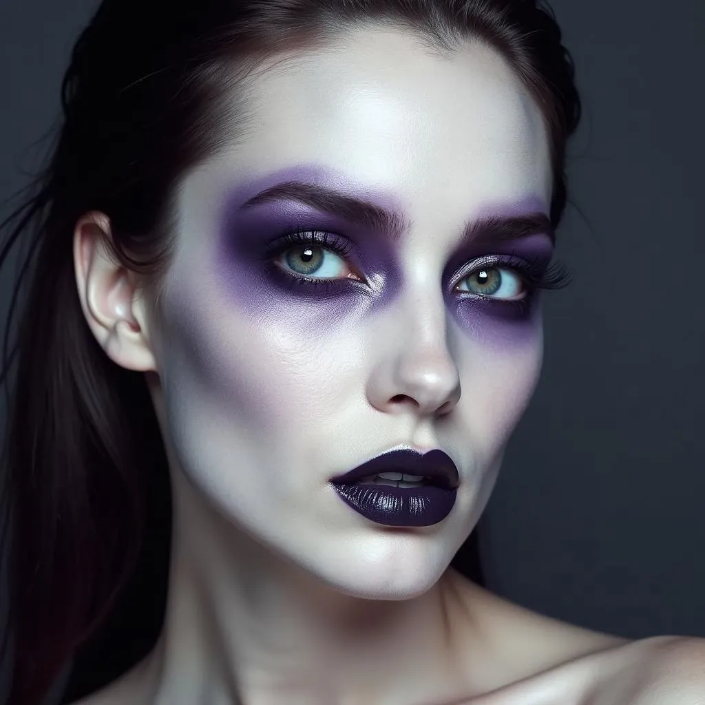 Use cool-toned contour shades in gray or deep purple to sculpt an ethereal, ghostly appearance.