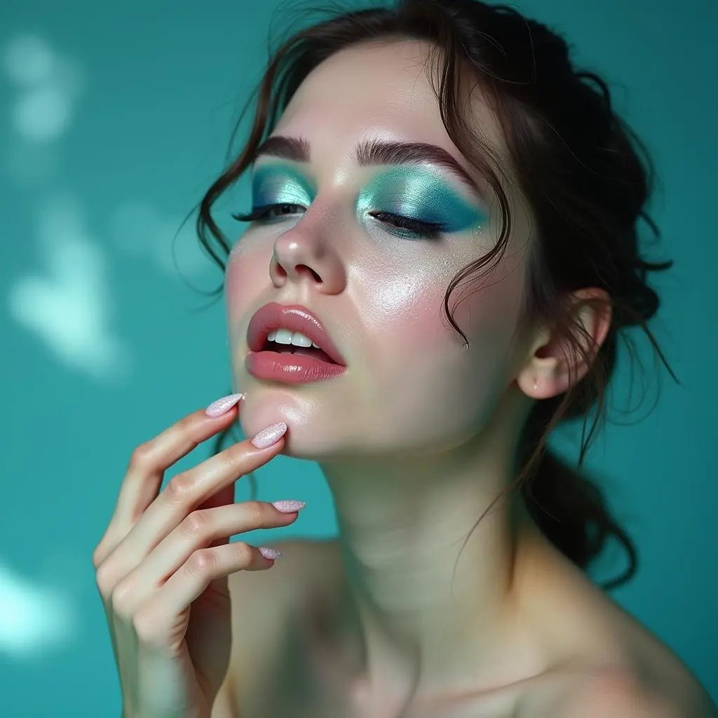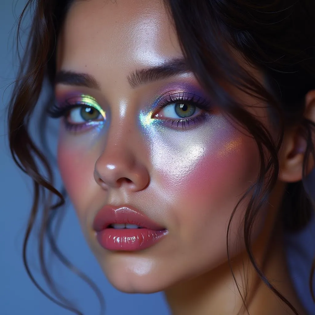 Use iridescent highlighter or holographic pigments to create a spellbinding, shifting glow.
