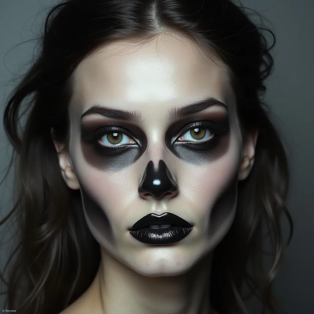 Contour with cool-toned grays and dark browns to create an eerily defined bone structure.