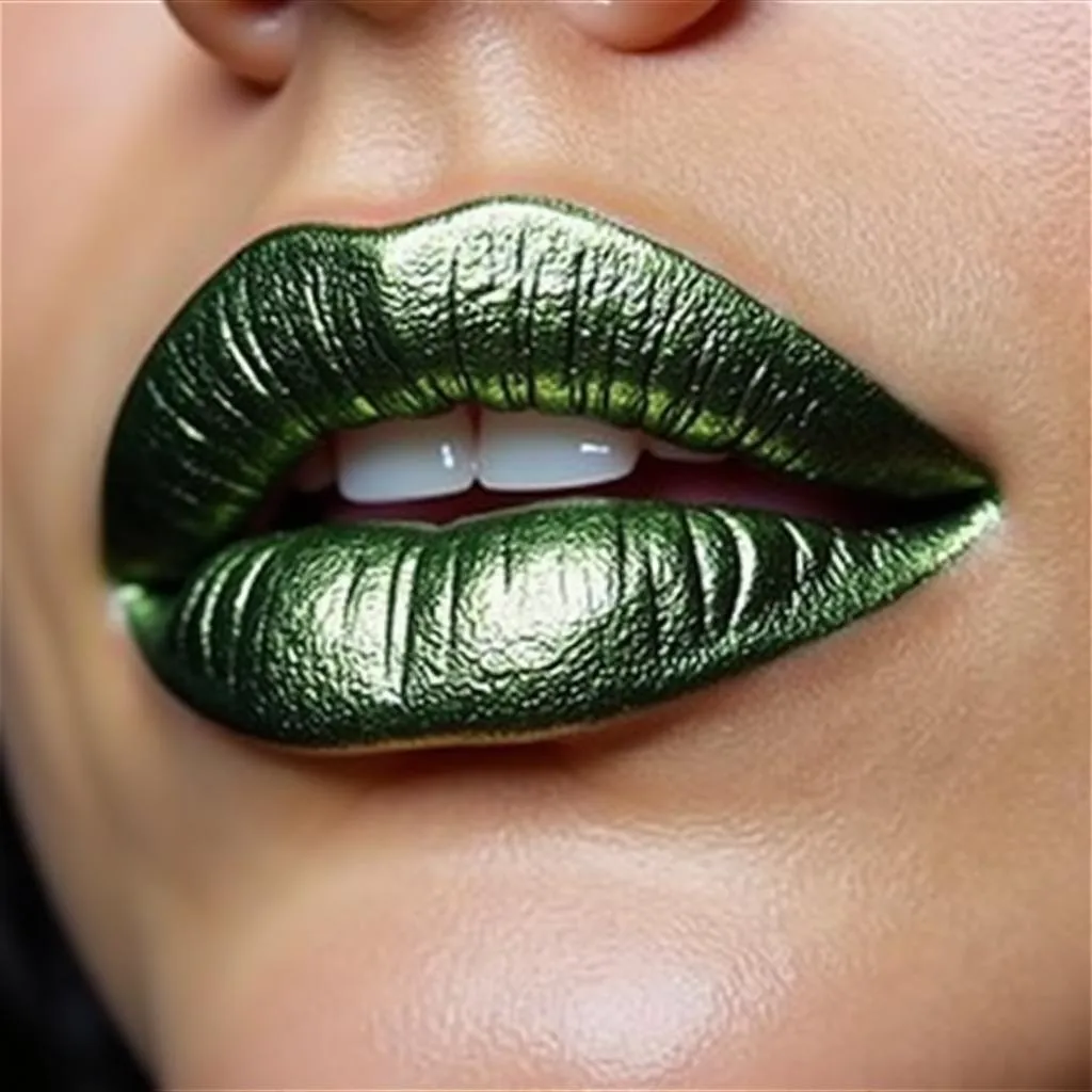 Use a metallic liquid lipstick in shades of silver, gold, or deep green for a magical, shimmering finish.