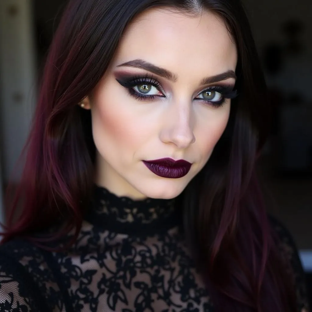 Go for a deep plum or blackened berry lipstick for a classic gothic siren look.