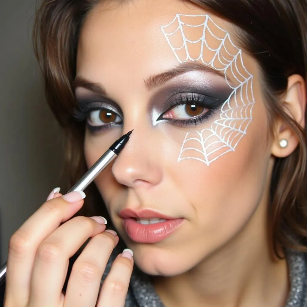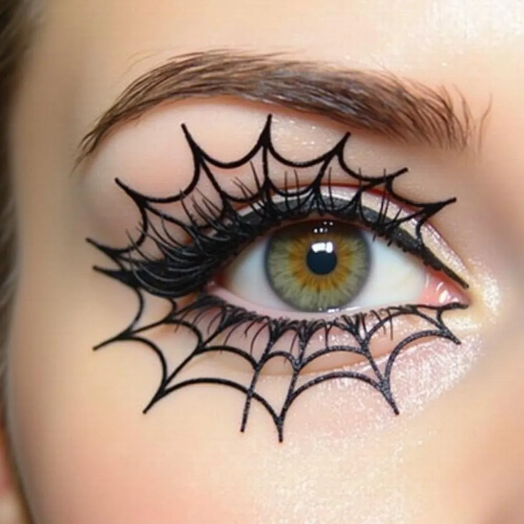 Create intricate spiderweb eyeliner designs for a hauntingly elegant finish.