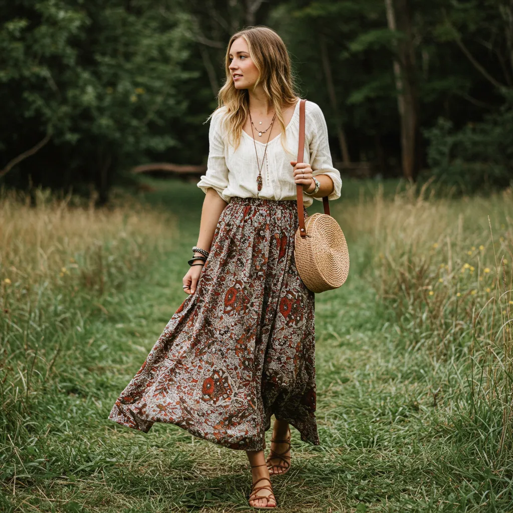 - How to Style It: Embrace the boho aesthetic with flat leather sandals and layered jewelry, like long pendant necklaces or a stack of bangles. A soft, unstructured bag completes the free-spirited feel.